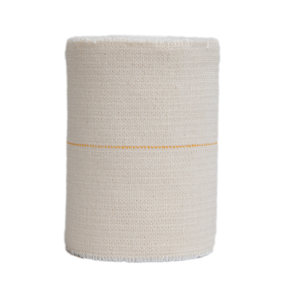 Elastic adhesive bandage for conditions requiring compression treatment, limitation of movement and dressing retention. Yellow line to assist accurate overlap when applying. Aggressive zinc oxide ahesive to ensure security and support, high quality cloth for superior strength, moderate unrolling tension for ease of application and selvedged edges to prevent fraying.