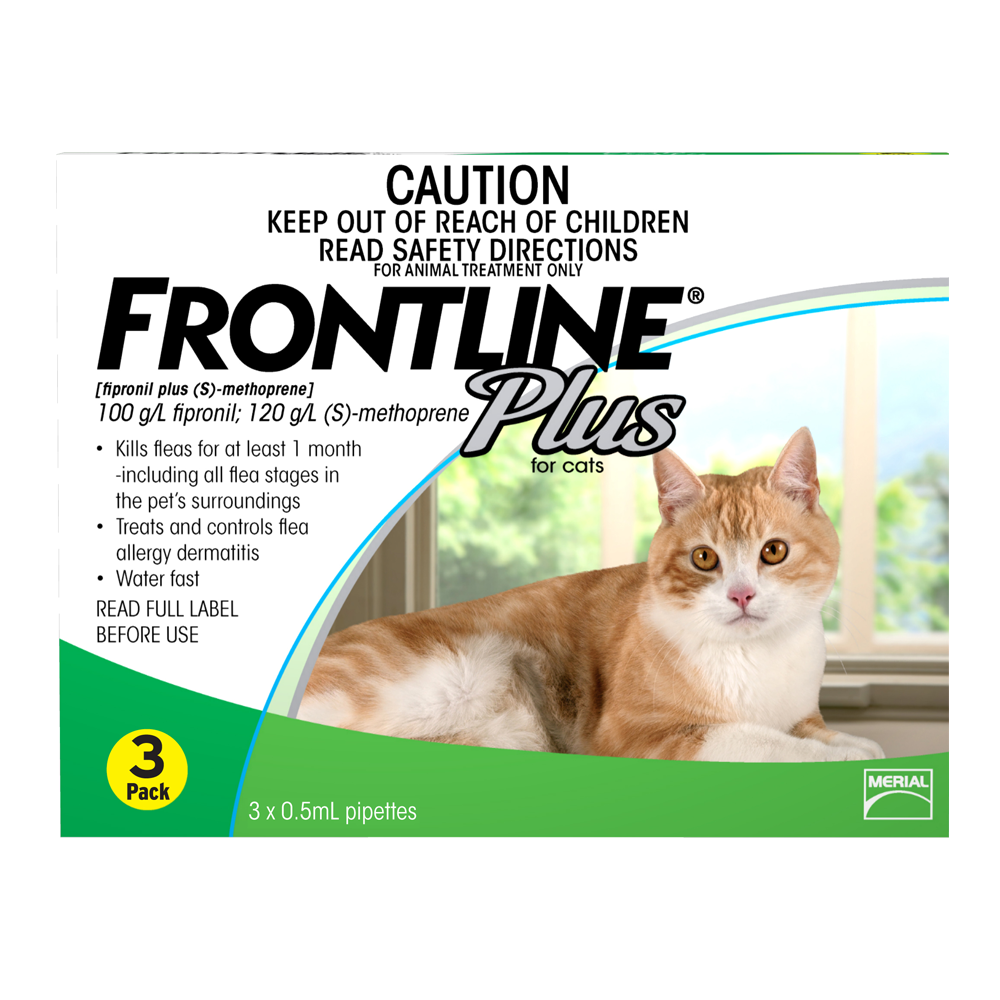 For the treatment and prevention of flea infestations, control and treatment of flea allergy dermatitis and control of biting lice on cats. Rapid onset to kill fleas and prevent development of flea eggs, larvae and pupae. Also kills fleas in the pet’s surroundings. Safe for use on kittens from 8 weeks of age and in breeding, pregnant or lactating queens. Each application provides one month of protection and is water fast within 24h after it has spread over the coat.