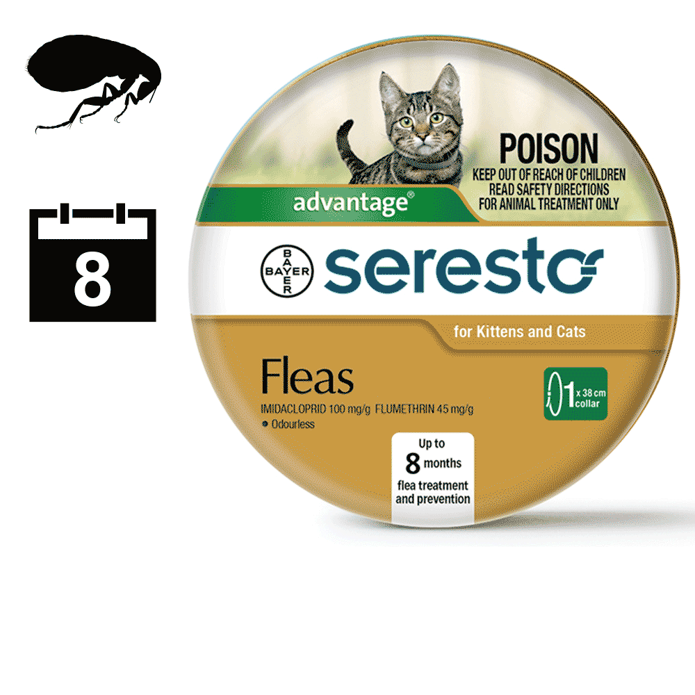 Seresto provides up to 8 months flea protection for cats in an